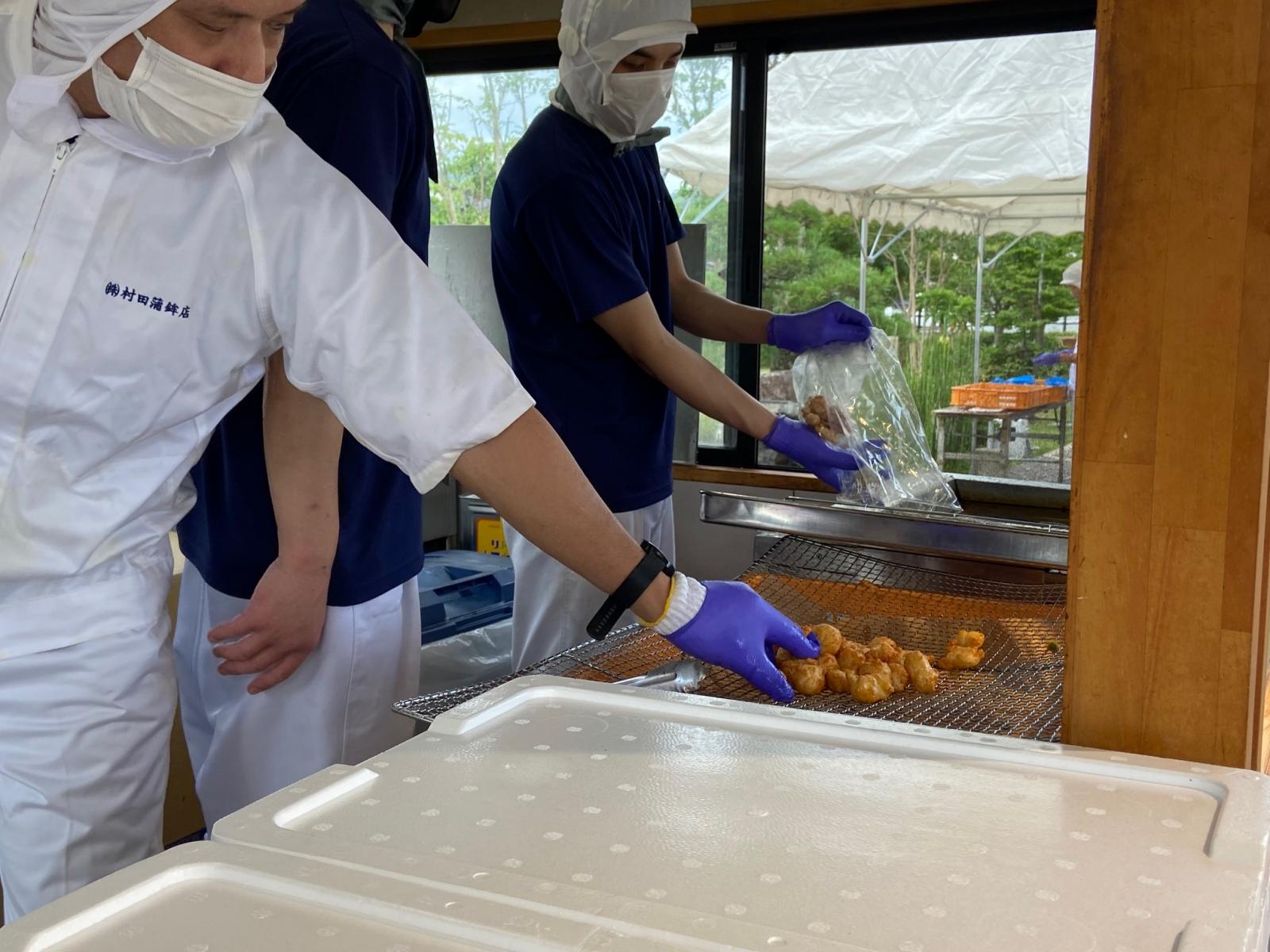 当店の工場スタッフが心を込めてその場で揚げた天ぷらをパックで販売しました。