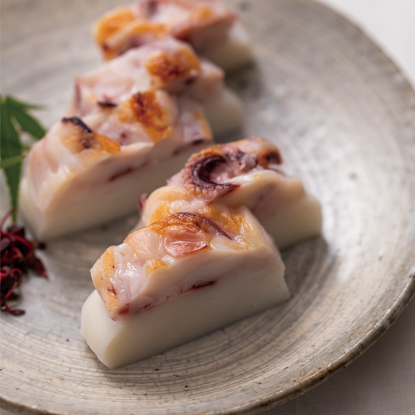 近海産の新鮮な烏賊を、当店自慢の蒲鉾すり身の上にのせて