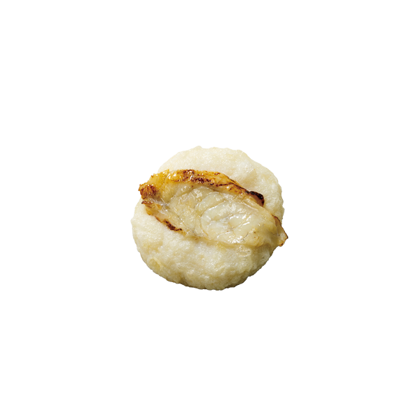 山口県の名産・ふぐのほぐしみを練り込み、さらに炙り焼きにした切り身をのせました。
